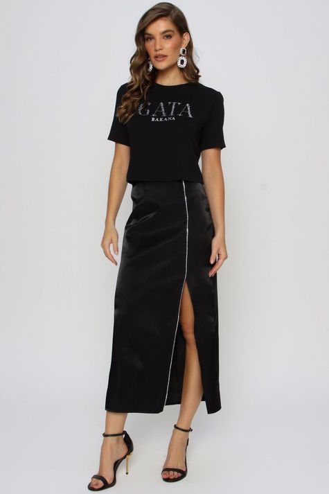 Saia Midi De Sarja é uma peça versátil e elegante, com modelagem levemente evasê que proporciona movimento e conforto. Seu design clean permite composições tanto casuais quanto sofisticadas, ideal para diferentes ocasiões.