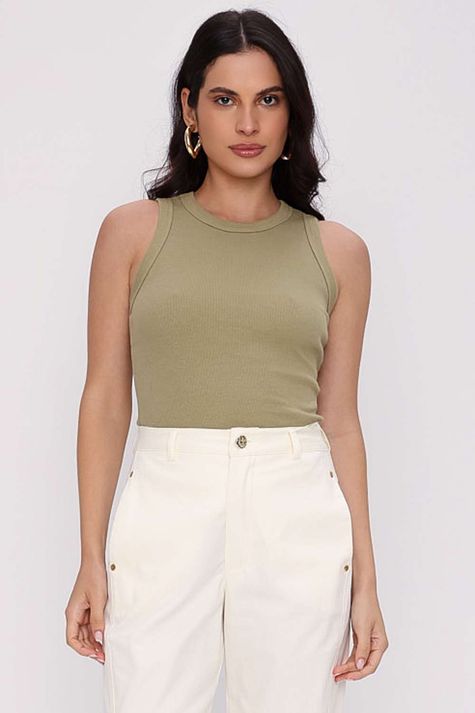 Cropped regata denim gb vem em malha canelada com caimento justo e comprimento na cintura, perfeito para combinar com jeans de todas as modelagens.