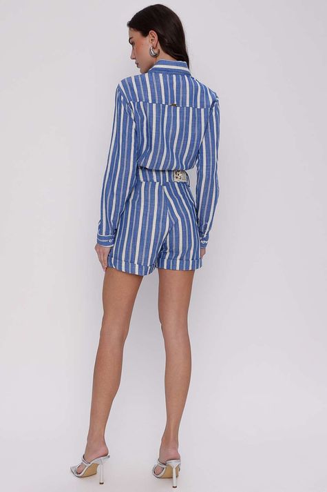 Modelagem soltinha com cintura alta e pala lisa que valoriza a silhueta. O destaque fica por conta das laterais: a barra forma um recorte arredondado, onde o bordado orgânico aparece em relevo, contornando os cantos e trazendo um efeito sofisticado sem exagero. Comprimento curto com fechamento discreto.