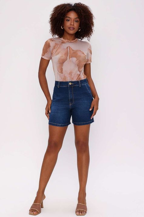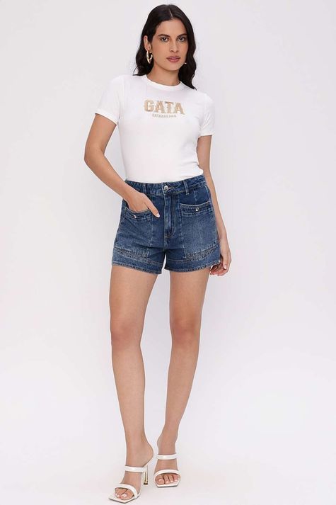 • Cintura alta com pala lisa e recortes que estruturam a peça