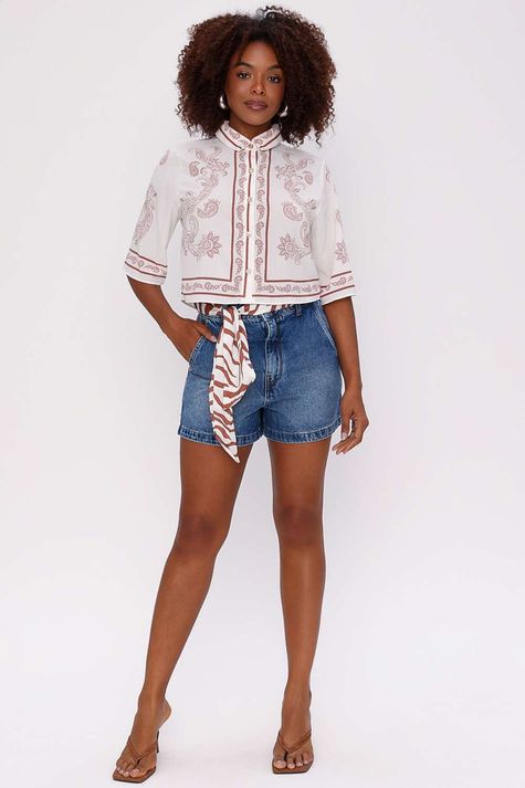 Shorts saia Glam traz cintura alta e sobreposição frontal tipo wrap com moldura geométrica no barrado, em print floral aquarelado e caimento curto. Shorts saia Glam conta com short interno que garante praticidade e acabamento preciso no visual.