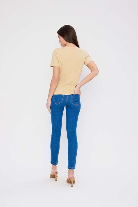 Skinny 25 Custo Beneficio é a calça skinny com caimento ajustado e barra justinha, destacando linhas limpas e efeito alongador. A lavagem azul clássica com leve desgaste frontal moderniza o visual, perfeita para composições do dia a dia e produções casuais.